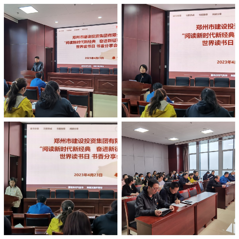 為推進全民閱讀、建設書香社會,以書香企業(yè)建設進一步堅定文化自信、提升文化自覺。4月23日上午,在第28個“世界讀書日”到來之際,鄭州市建設投資集團有限公司組織開展“閱讀新時代新經典 奮進新征程新偉業(yè)”讀書心得分享活動,公司各部室、各項目部、各控股公司60余人參加此次活動。