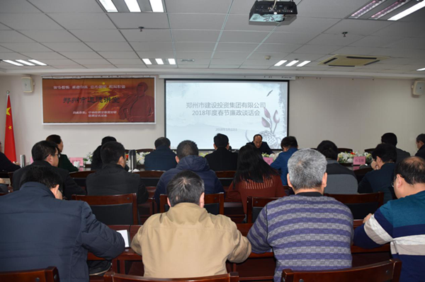 為貫徹落實習近平總書記在十九屆中央紀委二次全會上的重要講話精神和市委書記馬懿同志1月18日上午在全市領導干部春節廉潔談話會上的講話精神,提醒大家春節期間嚴格遵守廉潔自律規定,著力營造風清氣正、文明祥和的節日環境,1月22日上午,集團公司召開了2018年度春節廉政談話會。集團公司全體班子成員以及各部門、各項目部、各控股公司負責人、中層副職以上干部共40余人參加了本次會議。