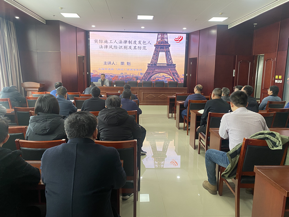 本次培訓邀請了上海市建緯(鄭州)律師事務所栗魁主任進行授課,主講的內容是《實際施工人法律制度發包人法律風險識別及其防范》。本次培訓,栗魁主任從實際施工人制度的來源對發包人的多重風險及生成邏輯進行了深入淺出的講解,又結合《最高人民法院關于審理建設工程施工合同糾紛案件適用法律問題的解釋》對相關法律問題進行詳細解讀和分析,使與會人員對建設工程施工合同糾紛法律訴訟中的有關問題有了深刻的理解。