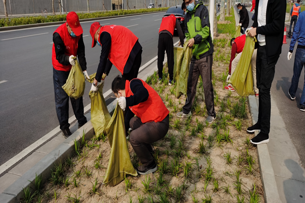 活動中,秦廣遠同志身體力行、率先垂范,身著志愿者服裝,頭戴小紅帽,帶領志愿者們對道路兩側的綠化帶等保潔區域衛生死角進行徹底清理,活動開展了兩小時,共清理了近兩公里綠化帶的衛生垃圾,清理垃圾約20袋,營造了干凈整潔的道路環境;同時志愿者們對行人隨地吐痰、隨意丟棄口罩等行為進行了勸阻,對道路兩側亂停亂放車輛現象進行了規范;還向附近居民宣傳愛國衛生活動,引導居民群眾科學、理性的應對疫情,倡導居民群眾養成文明健康、綠色環保的生活方式。